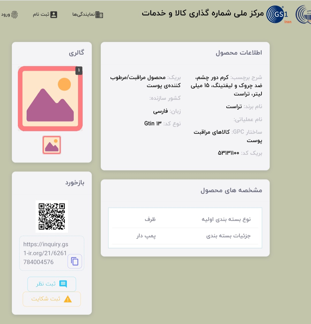 ۳. بارکد IR COD پشت جلد محصولات تراست: کافیه بارکد را در سایت زیر وارد کنید تا اصالت و توضیحات و مشخصات کالایی که تحویل گرفته اید را برای شما از مرکز ملی شناسه های کالا نشان دهد .