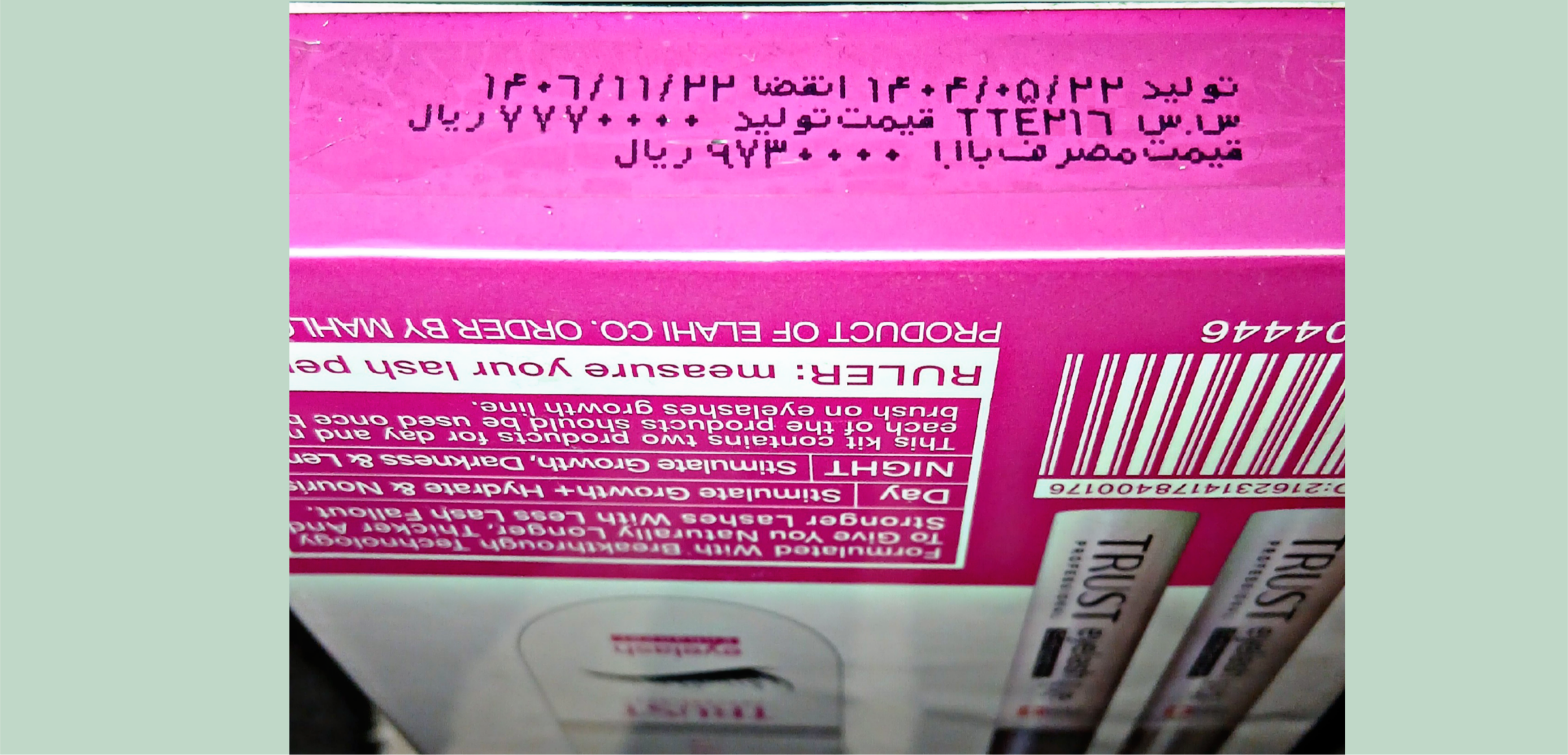 ۲. تمامی محصولات دارای تاریخ بروز هستند و ضمانت تاریخ دارند و همگی تولید یک الی دوماه پیش میباشند پس با خیال راحت خرید کنید ( نمونه تاریخ سرم تقویت مژه عکس زیر)