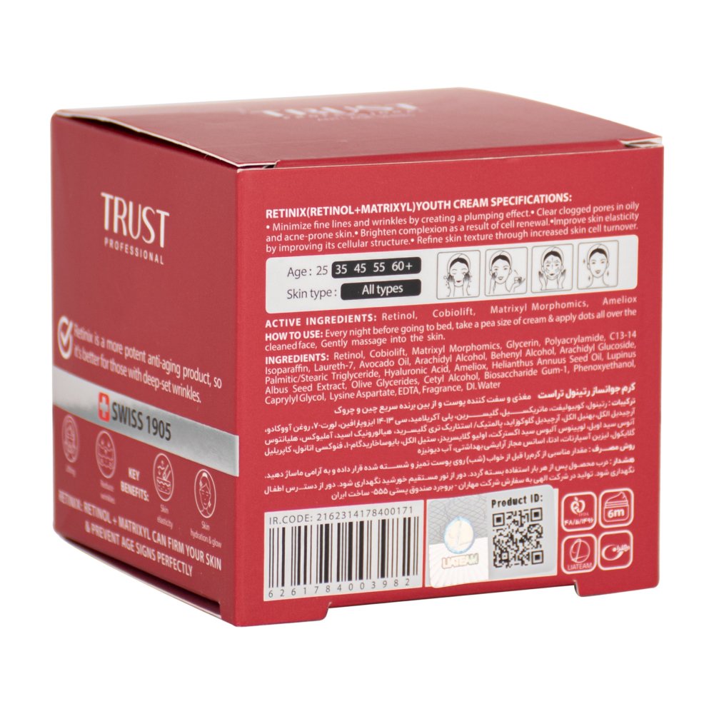 کاربرد: مغذی، تقویتکننده سلولها با خاصیت لیفتینگ و سفتکنندگی پوست، ازبینبرنده سریع چینوچروکهای پوستی نسبت به سایر کرمهای ضدچروک، افزایش استحکام و بازسازی سلولهای پوستی، تسکین التهابهای پوستی، آبرسانی مؤثر پوست، پاکسازی منافذ پوستی